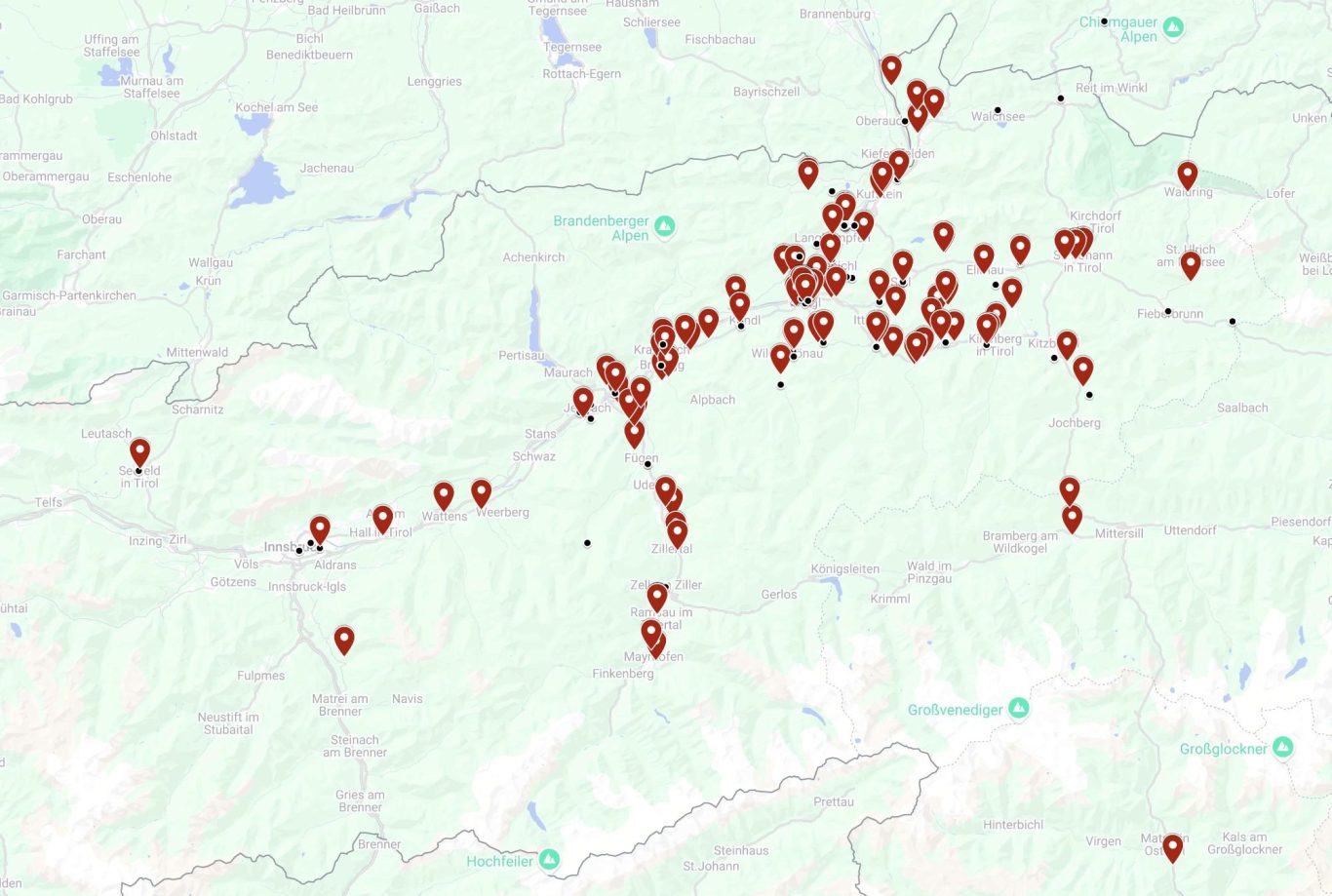Auf dieser Karte sind über 200 Projekte markiert, die ich als angestellter Statiker bearbeitet habe.